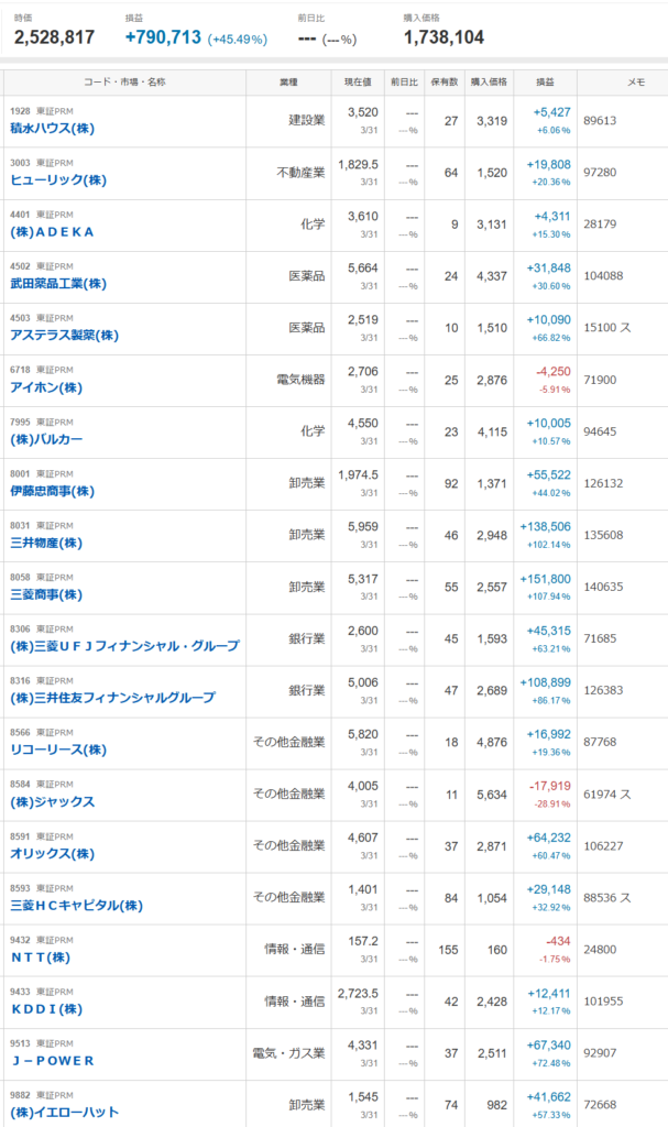 私事ではありますが4月中旬から手術入院をするため、次の投資記録は5月にまとめて投稿する予定です。